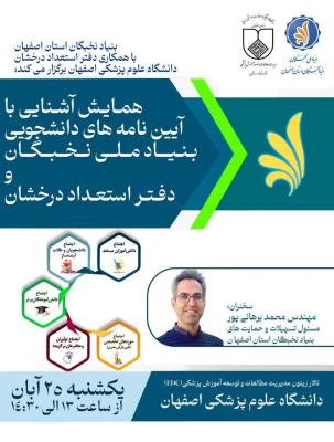 همایش مشترک دفتر استعداد درخشان با بنیاد ملی نخبگان همراه با پرسش و پاسخ (یکشنبه 25 آبان - 13 تا 14/30 تالار زیتون EDC